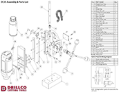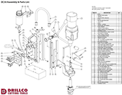 Assembly instructions and parts list for the Drillco DC35 Magnetic Drill Machine.