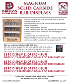 Our Burs are available in an attractive, hand made, plastic display case. 33, 66, or 99 piece displays, complete with either Single or Double Cut Burs.
